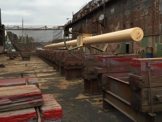 Isoldas Fockmast under tillverkning och påmastning vid Gotenius Varv